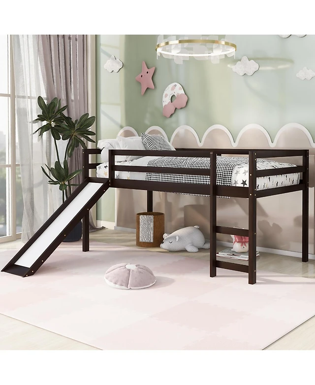 Gymax Twin Size Loft Bed with Slide Wood Low Sturdy Loft Bed Bedroom