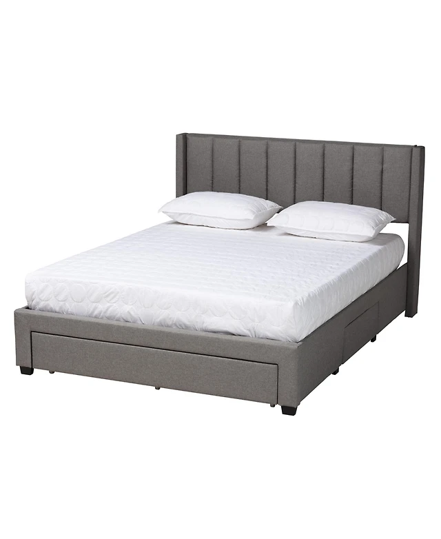 Streamdale Furniture Queen Upholstered Platform Bed w/ Wingback, Drawer & Stools