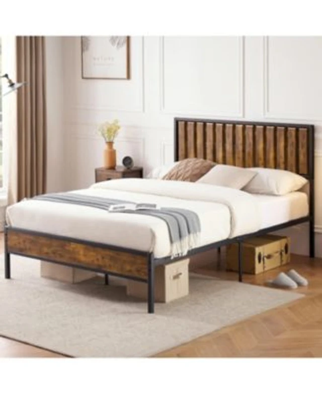 Full Wooden Bed Frame with Headboard and Slat Support-Full