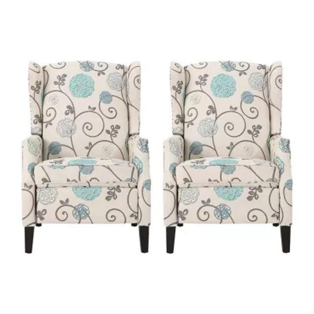 Kensington Hill Birdsong Script and Bird Recliner Chair Modern Armchair Comfortable Push Manual Reclining Footrest for Bedroom Living Room Reading