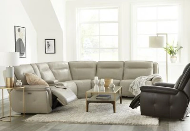 Nevio 124" 5-Pc. Leather Sectional with 1 Power Recliner, Headrests and Chaise, Created For Macy's