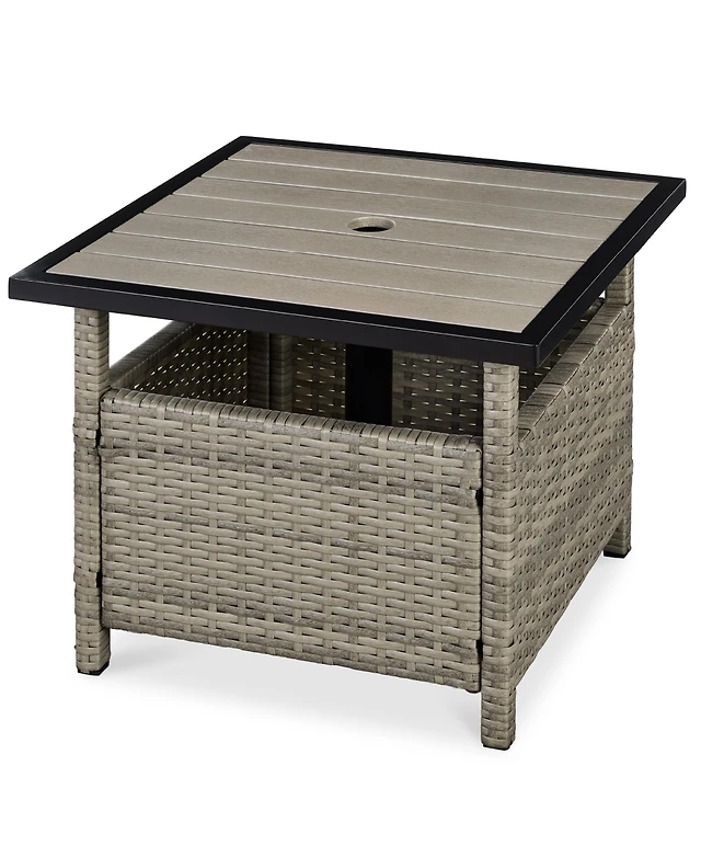 Gymax Rectangle Patio Outdoor Dining Table Acacia Wood Tabletop w/ 2'' Umbrella Hole