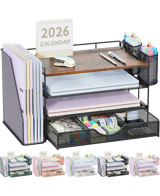 Gnuadz Stackable Paper Tray Desktop Organizer Metal Mesh File Storage