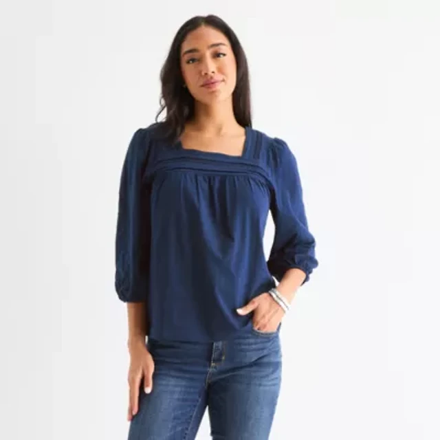 St. John's Bay Womens Square Neck 3/4 Sleeve Blouse