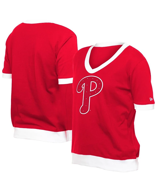 New Era Women's Red Philadelphia Phillies Game Day Rhinestone V-Neck T-Shirt