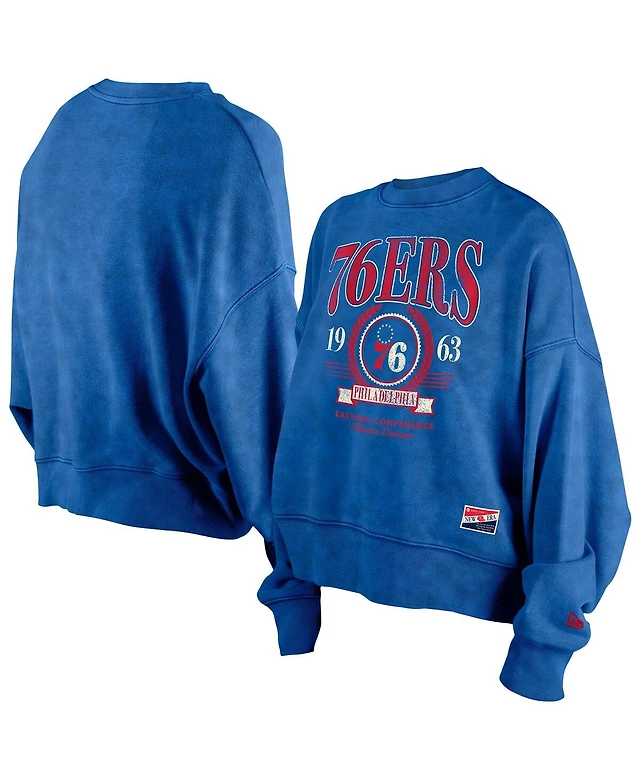 New Era Women's Royal Philadelphia 76ers Hardwood Classics Enzyme Wash Oversized Boxy Pullover Sweatshirt