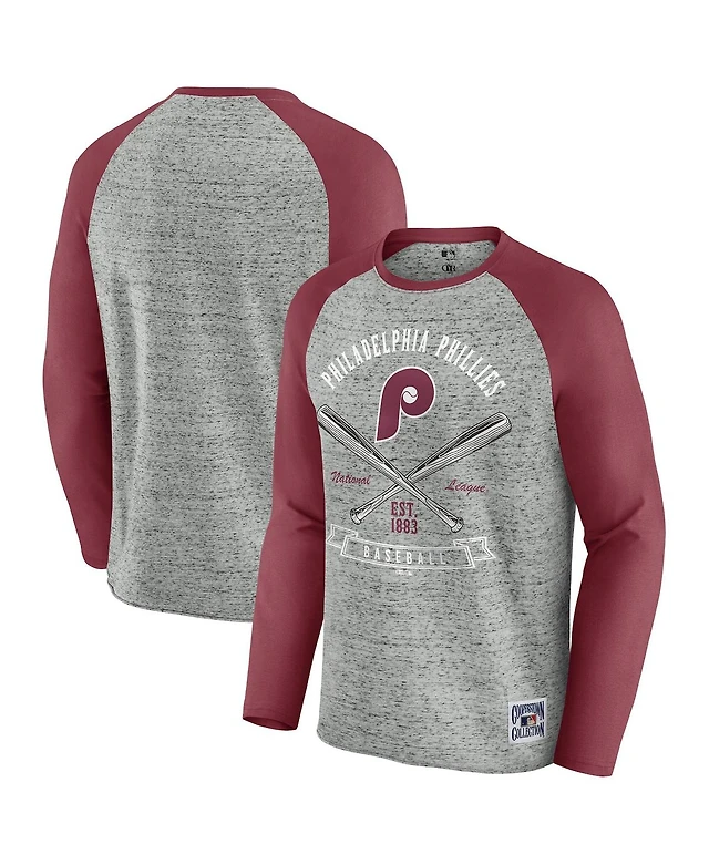 Fanatics Men's Heather Gray Philadelphia Phillies Raw Edge Raglan Long Sleeve Baseball T-Shirt