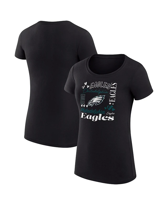 G-iii 4Her by Carl Banks Women's Black Philadelphia Eagles Super-Slim Fit Lightweight Collage Team T-Shirt