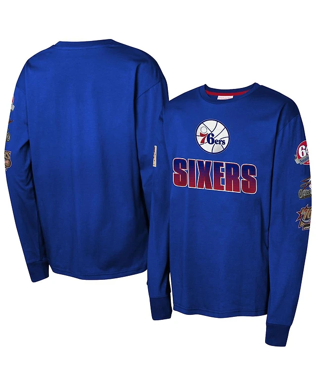 Mitchell & Ness Big Boys and Girls Royal Philadelphia 76ers Hardwood Classics All Over Long Sleeve T-Shirt