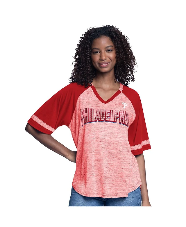 G-iii 4Her by Carl Banks Women's Red Philadelphia Phillies Top Dog Raglan Long Sleeve V-Neck T-Shirt