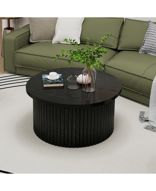 LuxenHome Wood Fluted Round Side Table Mid Century Modern Small End Table for Small Spaces