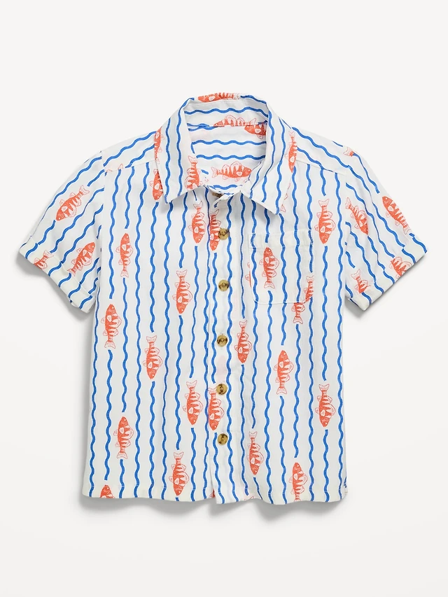 Oversized Short-Sleeve Crochet-Knit Shirt for Toddler Boys