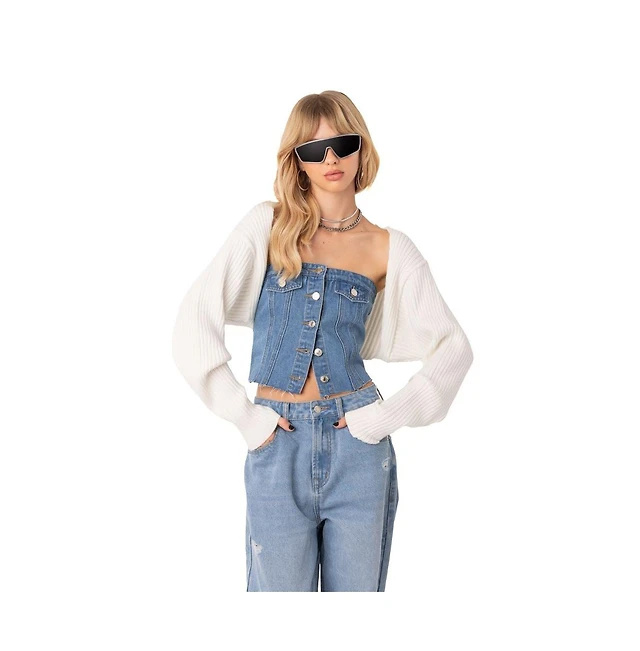 June + Vie Women's Plus Size Ruffled Long-Sleeve Sweater