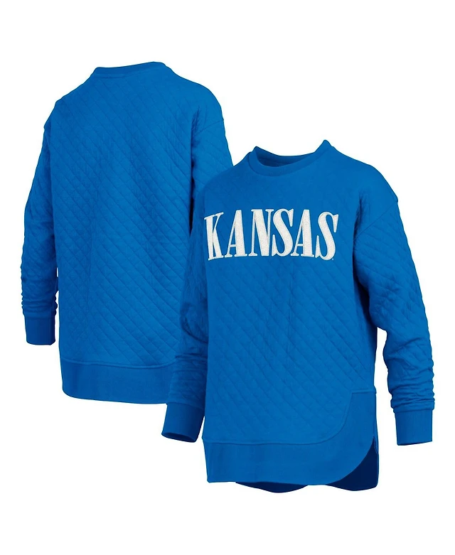Pressbox Women's Royal Kansas Jayhawks Quilted Long Sleeve Pullover Sweatshirt