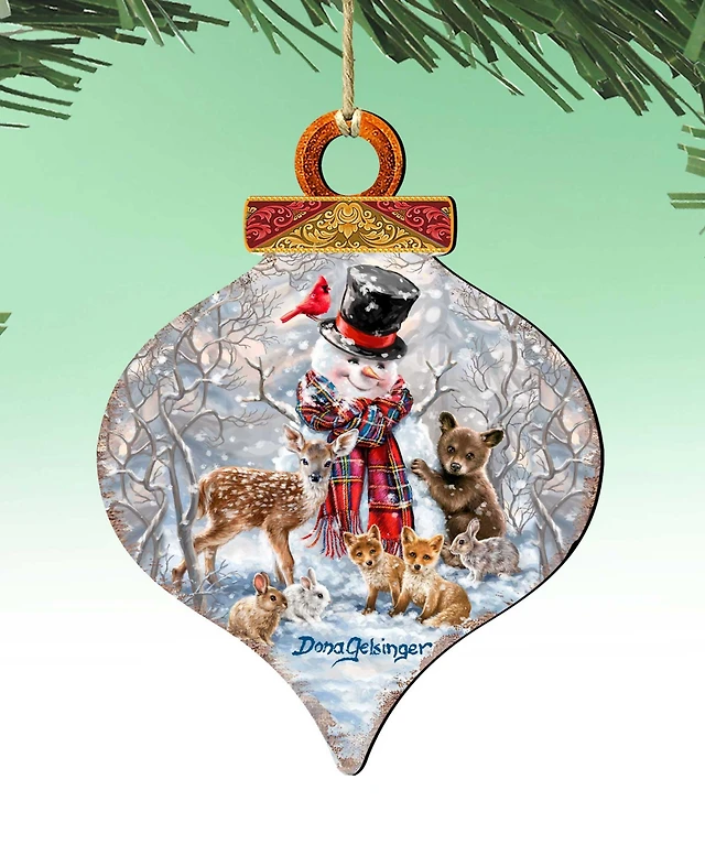 Designocracy Holiday Wooden Ornaments Snowman with Cardinals Home Decor Set of 2 S. Winget