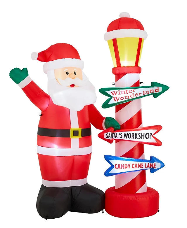 Glitzhome 7" Lighted Inflatable Santa with Lamp Post Sign Decor