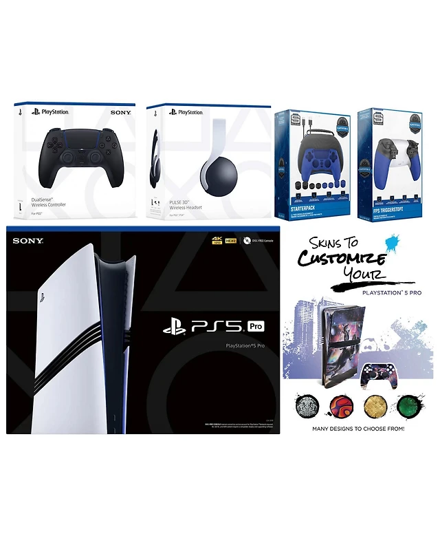 Sony Playstation 5 Pro Bundle with White Pulse Headset, Extra Cobalt Blue Controller, Gamer Kit, Trigger Kit and MightySkins Decal Voucher Plus 2