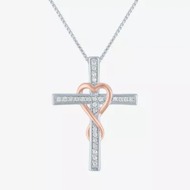 Diamond Accent "Faith" Womens Diamond Accent Natural White Diamond Sterling Silver Cross 18 Inch Pendant Necklace