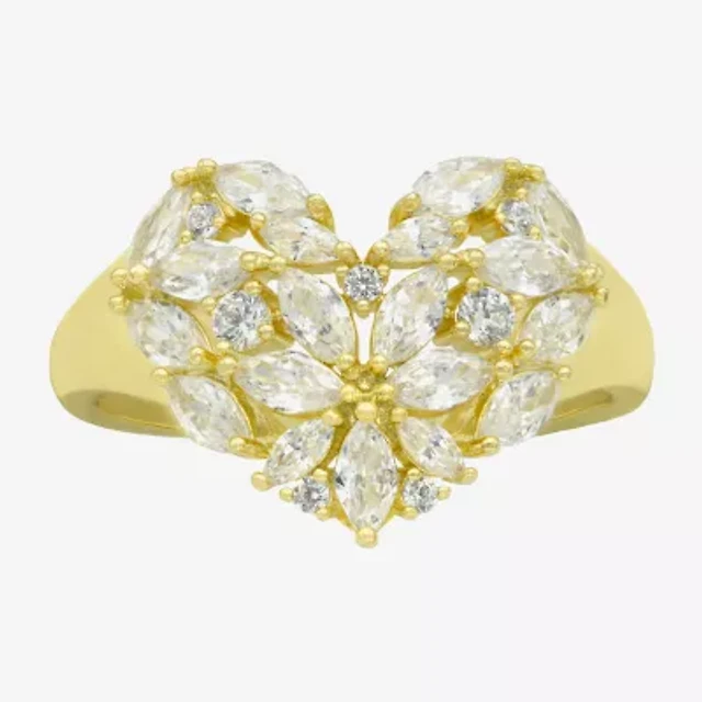 Sparkle Allure Womens Cubic Zirconia 14K Gold Over Brass Heart Cluster Cocktail Ring