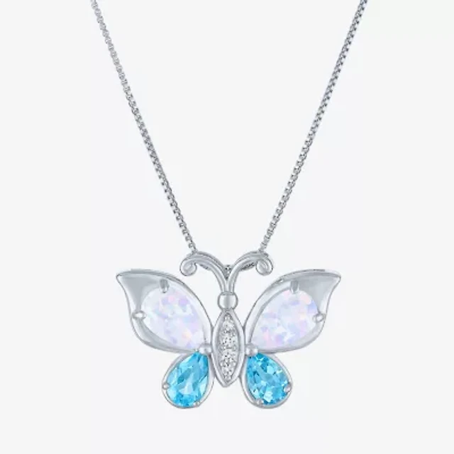Womens Lab Created White Sapphire Sterling Silver Butterfly Cocktail Ring