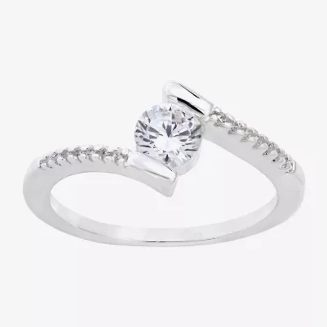 Sparkle Allure Side Stone Womens Cubic Zirconia Pure Silver Over Brass Round Engagement Ring