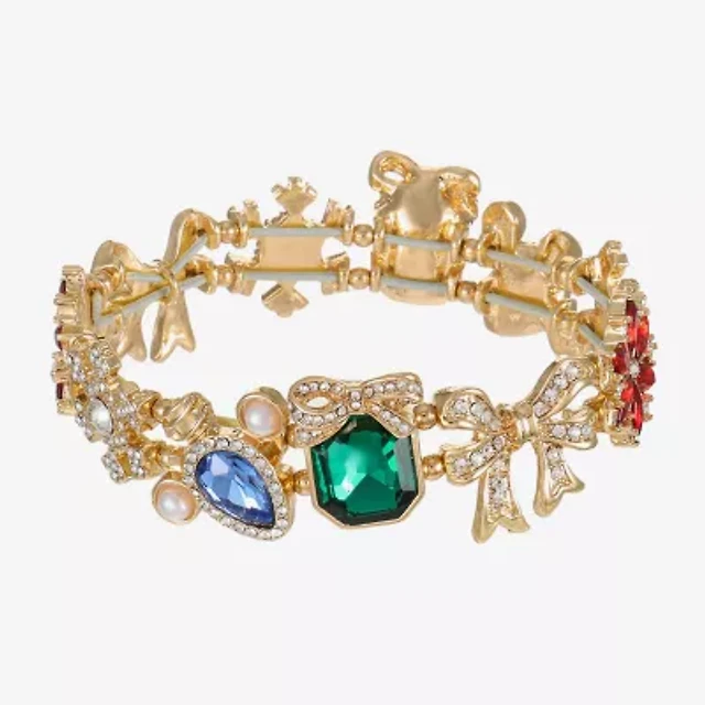 Monet Jewelry Gold Tone Velvet Halo Womens Glass Stretch Bracelet