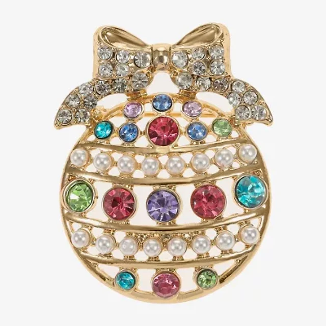 Monet Jewelry Gold Tone Christmas Womens Red Glass Simulated Pearl Charm Bracelet