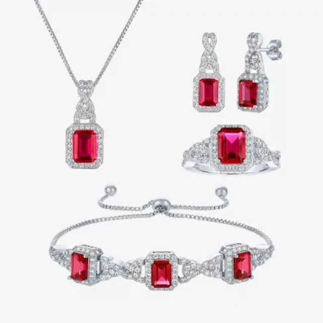 Yes, Please! Womens Lab Created White Sapphire 14K Gold Over Silver 2 Pair Jewelry Set