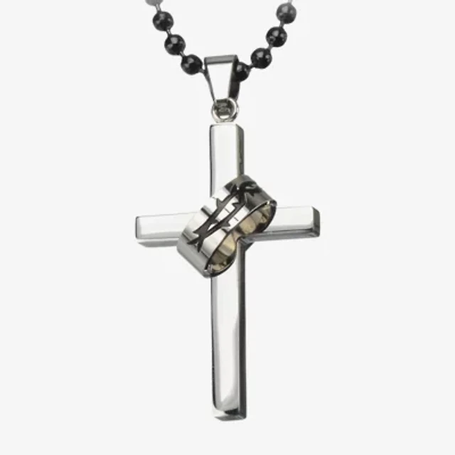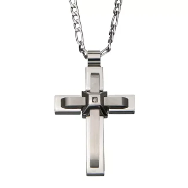 Mens 1/10 CT. T.W. Natural White Diamond Stainless Steel Cross 2-pc. Jewelry Set