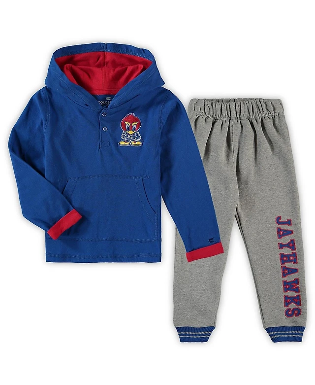 Toddler Boys Colosseum Royal and Heathered Gray Kansas Jayhawks Poppies Hoodie Sweatpants Set