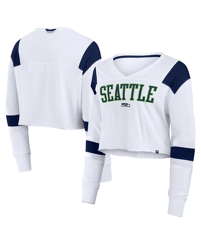 Fanatics Women's White Seattle Seahawks Stretch Cropped Fashion Long Sleeve T-Shirt