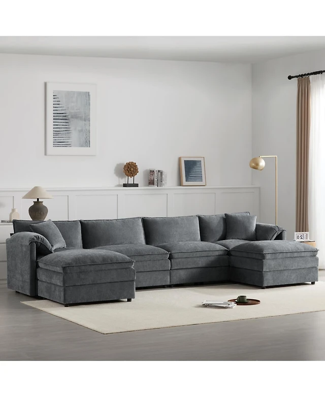 Streamdale Furniture Modular U-Shaped Chenille Sectional Sofa with Ottomans