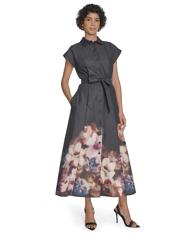 Calvin Klein Plus Printed Short Sleeve Shirtdress