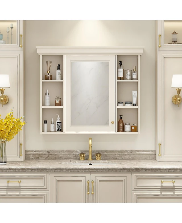 Kleankin Led Lighted Medicine Cabinet with Mirror, 35.5"W x 25.5"H Wall Mounted Bathroom Cabinet with 3 Cupboards, Memory Function, Usb Charge, High G