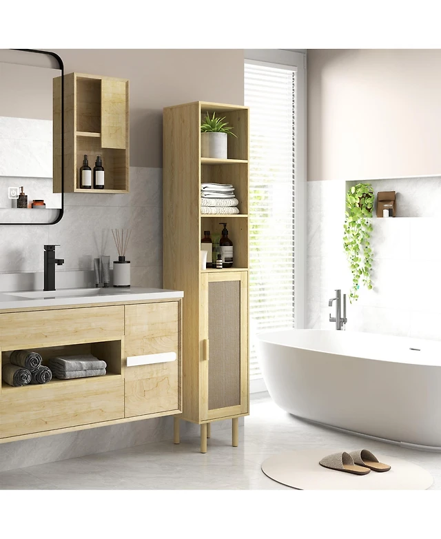 Tall Bathroom Storage Cabinet with Doors, Drawers, Shelves, Adjustable Shelf