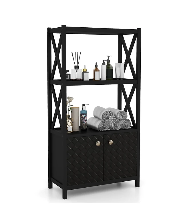 Yaheetech 60.5" H Tall Bathroom Floor Cabinet with Single Door and Shelve Black