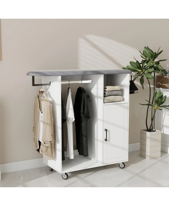 7-Drawer Chest, Wood Storage Dresser File Cabinet with Wheels, White