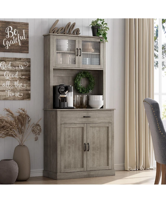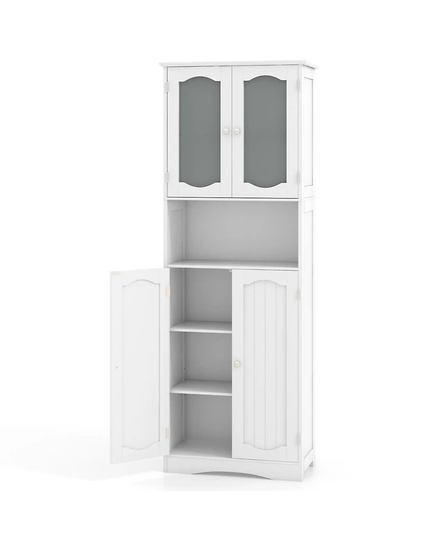 Tall Storage Kitchen Cabinet Freestanding Cabinet with Glass Door and Shelves