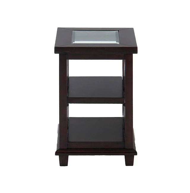 Steve Silver Rafael 25.5" Round Merlot Wood End Table with Cracked Glass Insert