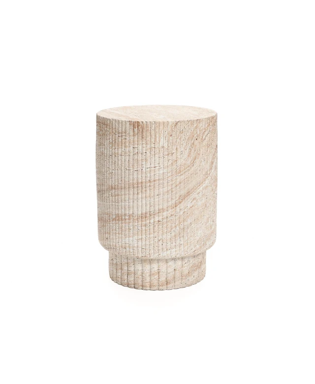 LuxenHome Off White with Gray Cement Fluted Round Indoor Outdoor Side and End Table