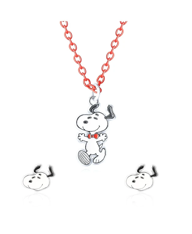 Peanuts Snoopy Fashion Necklace and Earring Set, 16 + 3'' Chain