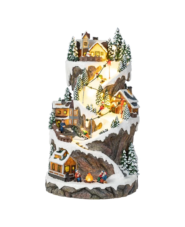 Glitzhome 15.5" Lighted Resin Christmas Skiing Mountain Village