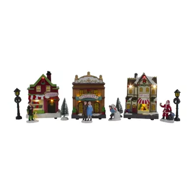 Glitzhome 11.75"H Christmas Lighted Resin Village Christmas Tabletop Decor