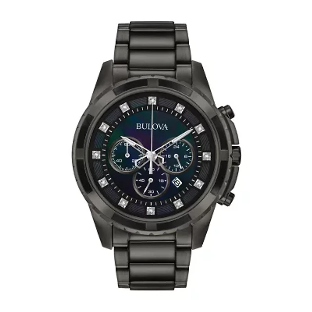 Bulova Marine Star Mens Diamond Accent Black Stainless Steel Bracelet Watch 98d176