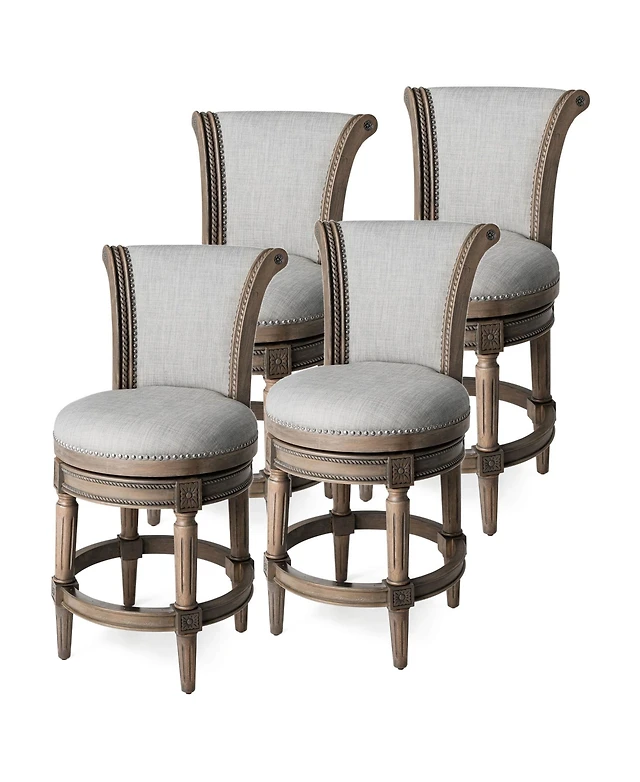 Maven Lane Pullman Counter Stool in Reclaimed Oak Finish with Ash Grey Fabric Upholstery, Set of 4