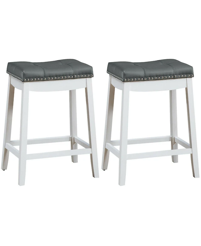 Woven Saddle Stools Set of 2 25.5'' Faux Pu Leather Counter Height Kitchen Stool