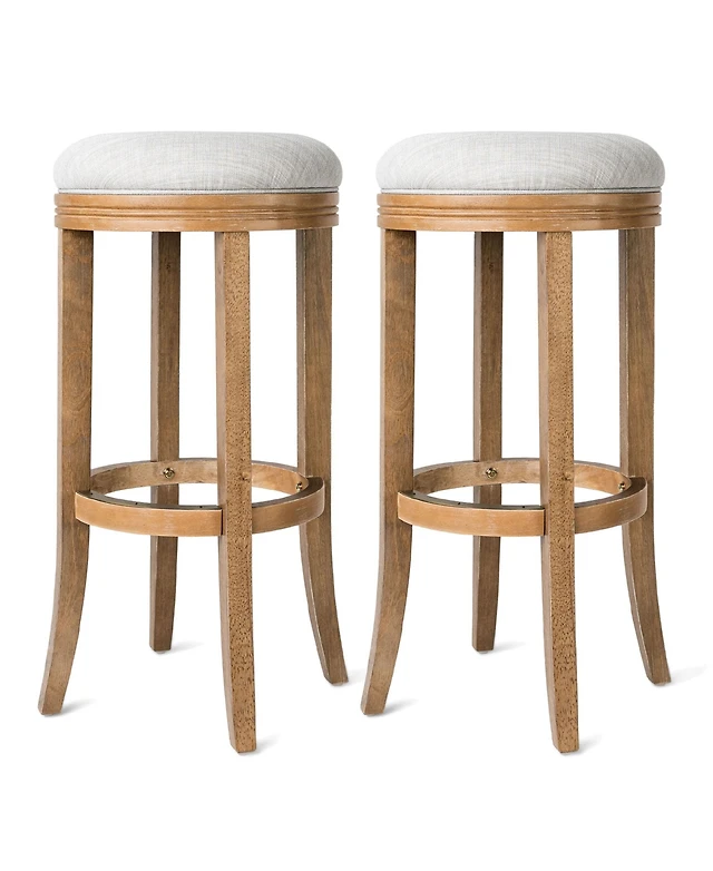 Maven Lane Eva Bar Stool in Weathered Oak with Sand Fabric Upholstery, Set of 2