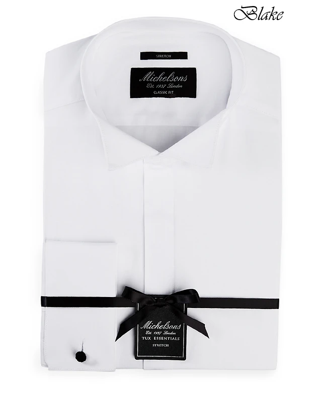 Michelsons Of London Mens Stretch Solid Wing Collar French Cuff Tuxedo Shirt Regular Slim Fit