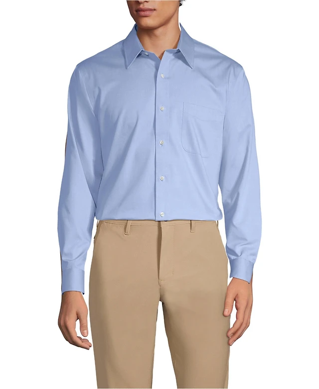 Lands' End Big & Tall Solid No Iron Supima Pinpoint Straight Collar Dress Shirt