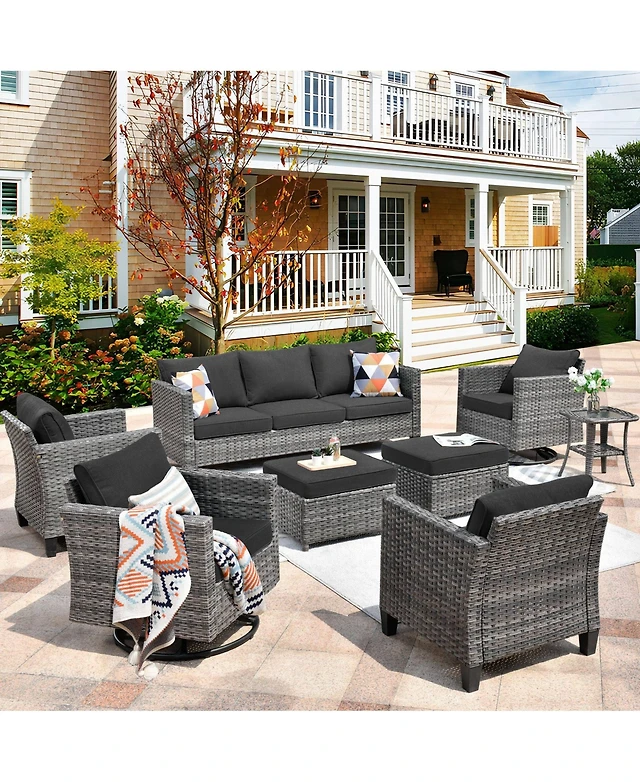 Xizzi Patio Furniture Sets Outdoor Swivel Rocking Chairs with 50,000 Btu Propane Fire Pit Table 7 Pieces All Weather Pe Wicker Conversation Sofa and M